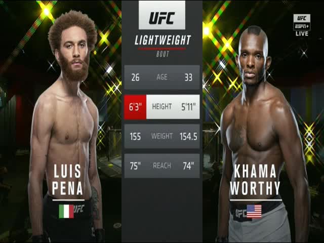 Or at the very least two fighters with the potential to be stars. Khama Worthy Fight Stats Highlights June 27 2020 Luis Pena and Khama Worthy faced each other in the lightweight bout at UFC on ESPN 12. Luis Pena vs Khama Worthy FULL FIGHT 720P - June 27 2020 - UFC Fight Nightufc boxing ufcfightnight toprankespn.
